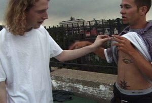 Experimental filmmaker Mark Street, who lives in Brooklyn and teaches at the University of Maryland, Baltimore County, returns to Filmforum with the L.A. premiere of At Home and Asea (2002), a collage of portraits charting the disillusionment shared by a group of Baltimore denizens. Street, whose previous work includes striking abstract pieces, as well as films in which he’s scratched and bleached the emulsion, here works with digital video; this allows him to capture intimate and casual moments with his subjects, who include three single mothers, a 23-year-old beer-drinking slacker and a man trying to understand his deceased father’s lpge by revisiting what the elderly man left behind. While it’s never entirely clear what’s scripted and what’s real, the video nevertheless gradually acquires a weighty torpor as the characters fight the inertia wrought by the exhausting, uphill struggle to create lives that live up to expectations. Street has always been adept at aligning invisible emotions with their physical counterparts, and here he perfectly captures his subjects’ anomie with images of Baltimore’s anonymous buildings and blighted neighborhoods. Their growing despair is perhaps best embodied, though, in shots showing boats bobbing slowly up and down on the gray water against the evanescent, lead-colored fog.” – Holly Willis, LA Weekly